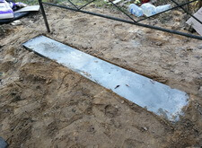 На данном участке изначально присутствовал только простой бетонный памятник и металлическое ограждение. Нам же необходимо было привести территорию могилы в полный порядок. Приступая к работе, мы первым делом вкручиваем определяющие фундамент сваи.
