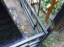 Последовательность работы стандартная. Во-первых, сжечь старую краску, во-вторых, зачистить ограду до металла, после покрыть грунтом чистый металл и покрасить черной краской. После покраски убраться на могиле. Далее на фото обожженная краска на ограде.