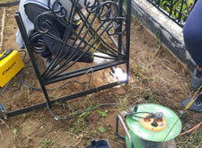 В данном случае мы приступили к работе на уже существующей могиле, на который были памятник с цветником и оградка. Клиенту мешала трава на участке, поэтому было принято решение отсыпать территорию каменной крошкой.