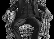 Далее представлены макеты, которые мы создали на основе выше приведённых снимков. Последний вариант удовлетворил заказчика и был выгравирован на памятнике. На этапе работы с фотографиями мы дорисовали кресло, а также задний фон для ростового портрета.