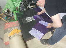 Зачищаем поверхность основания, на которой будет установлено надгробье, врезаем опорные арматурные штыри.